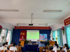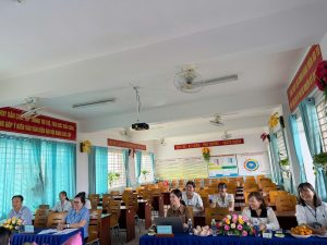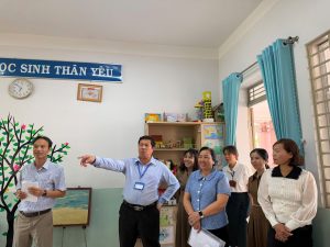 Tiếp đoàn kiểm tra hôm nay gồm có : Bà Nguyễn Thị Mỹ Linh – Cán bộ Phòng Văn hóa – Xã hội xã Phú Giáo; Bà Nguyễn Thị Khuyên – Ban đại diện hội phụ huynh học sinh; Về phía nhà trường có Ban Giám hiệu, đại diện các tổ chuyên môn và bộ phận phụ trách kiểm định chất lượng giáo dục.